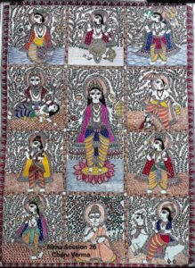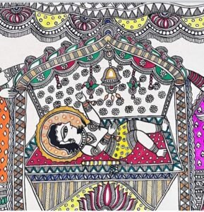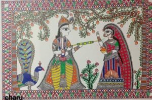 o Themes of Madhubani paintings are based on the mythological characters which depict the life of Hindu deities like Krishna, Rama, Lakshmi, Shiva, Durga, and Saraswati.