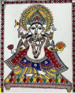 Madhubani painting, also known as Mithila painting, is a reflection of India’s artistic heritage. It represents the cultural identity of the Maithili women of Bihar, where artists create intricate paintings with brushes, twigs, matchsticks, or their fingers.